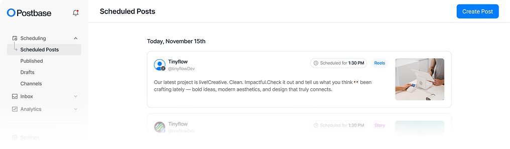 Social Media Platform APIs: When you connect a social media account to Postbase, we use that platform's official API to: